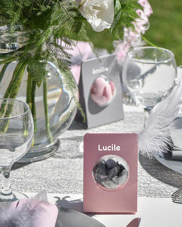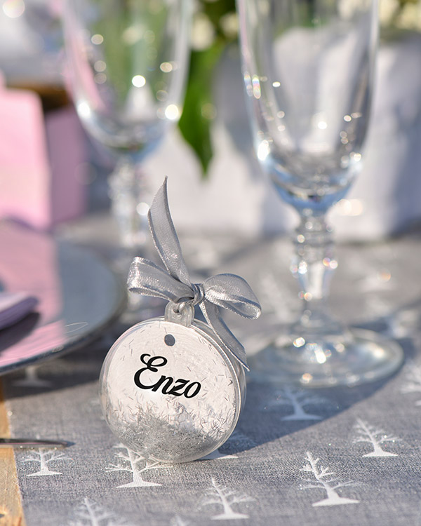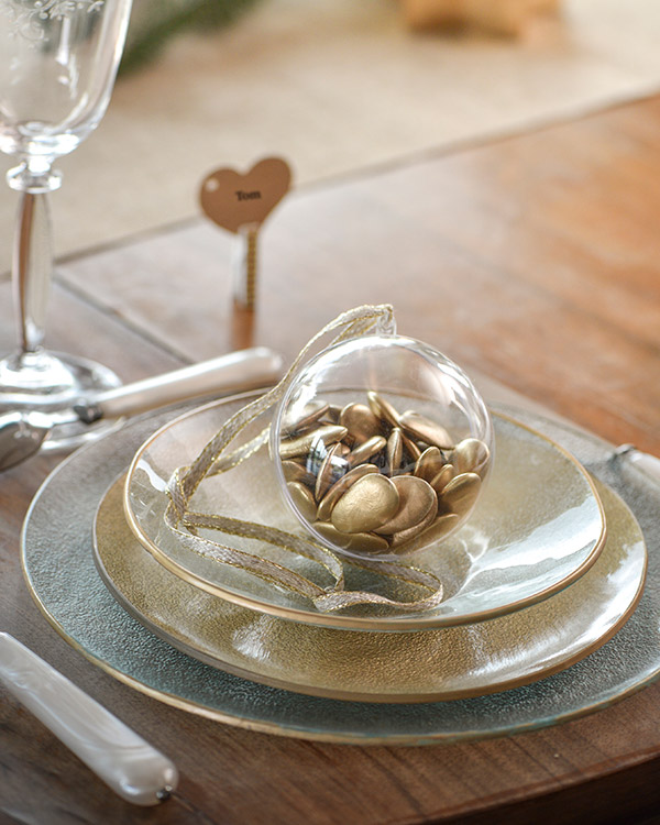 Gjennomsiktig ball på 10 cm til å ha godteri inni. Legg de på tallerknene til gjesten for en koselig overraskelse på festen.