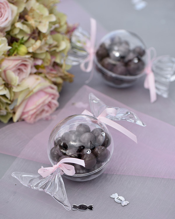 Gjennomsiktig ball formet som et godteri på 8 x 14,8 cm til å ha godteri inni. Legg de på tallerknene til gjesten for en koselig overraskelse på festen.