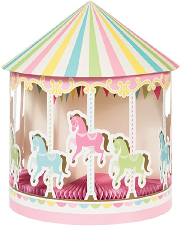 Legg til et magisk preg på feiringen med vår hengende 3D karusell med hest! Denne dekorasjonen, som måler 30,5 cm, svever elegant og gir et lekent og delikat innslag til ditt arrangement. Perfekt for å skape en drømmende atmosfære på barneselskaper eller temafester.