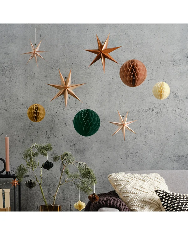 Honeycomb / Hengedekorasjoner (8stk): Runde – Svart, Grønn, Krem & Gull – 13-39cm