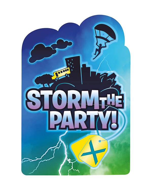 8 stk invitasjonskort med Battle Royale tema. Kortene er 16×11 cm. Skal dere invitere til gaminbursdag? Da er disse invitasjonskortene midt i blinken! Kan selvfølgelig brukes til å invitere til alle typer bursdag.