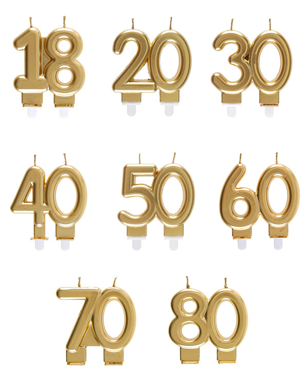 Kakelys formet som tall i gull. Kakelysene kommer i tallene 18, 20, 30, 40, 50 og 60. Et morsomt tilskudd til feiring av jubilanten. Vi har også ballonger, servietter og kopper med tall på hvis du ønsker å kjøre et gjennomført alderstema. Lyset er 9cm stort.