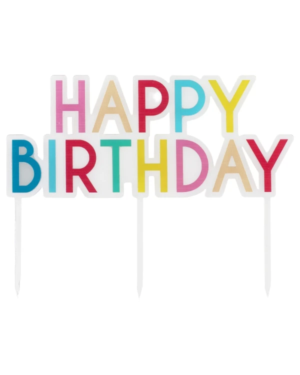 Denne regnbuefargede kaketoppen med teksten “Happy Birthday” er den perfekte dekorasjonen til bursdagskaken din. Med en høyde på 13 cm vil den definitivt tiltrekke seg oppmerksomhet og legge til en festlig touch til feiringen. Laget av høykvalitetsmaterialer, er denne kaketoppen både holdbar og slitesterk. Den vil være et flott tillegg til enhver bursdagsfest og vil sikkert glede både bursdagsbarnet og gjestene. Bestill denne regnbuefargede kaketoppen i dag og gjør bursdagen ekstra spesiell!