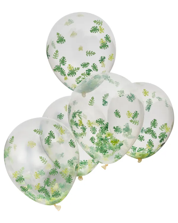 Konfettiballonger (5stk): Med palmeblader – Fargerik – 30cm
