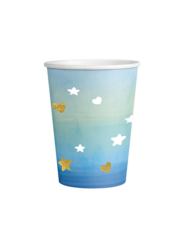 Kopper (8stk): Hello World / Oh Baby Hjerter og stjerner ombre blå – 16,5cm