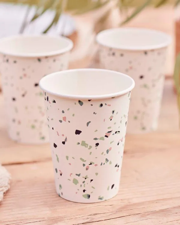 Kopper (8stk): Terrazzo Print – Rosa – 9cm H x 8cm B