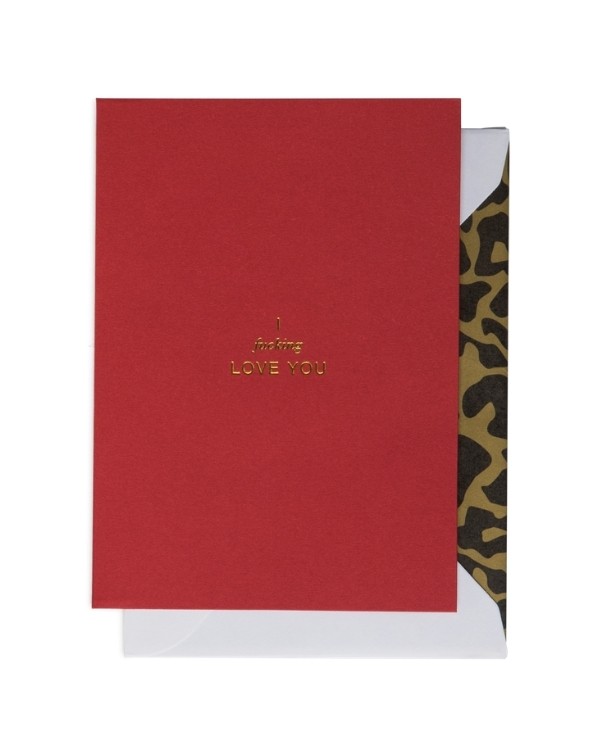 Kort med teksten “I Fucking Love You”. Kortet har en hvit bakgrunnsfarge med svart og gullfarget tekst. Kommer i A6 størrelse. Morsomt kort til noen du elsker.
