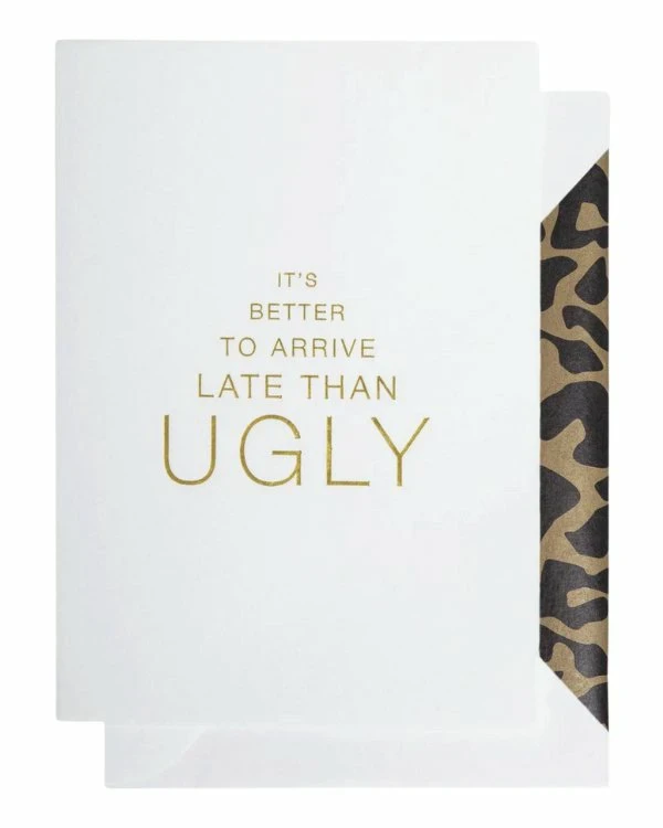 Kort: “It’s better to arrive late than ugly” – A6 – Hvit, Gull