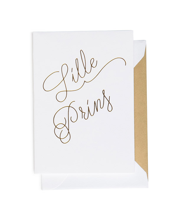1 stk. Kort med teksten “Lille Prins”. Kortet har en hvit bakgrunnsfarge med gullfarget tekst. Kommer i A6 størrelse. Har du en liten prins du kjenner som feirer bursdag? Kjøp dette kortet for å gi prinsen det han fortjener.