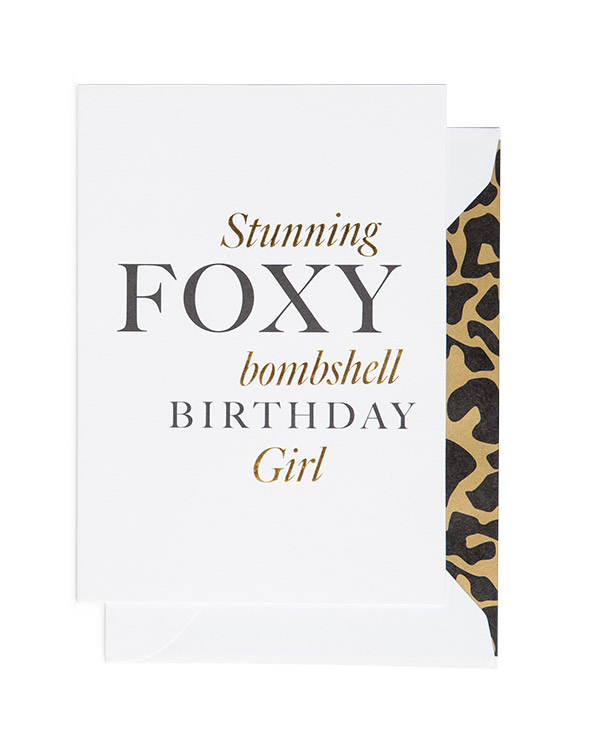 1 stk. Kort med teksten “Stunning Foxy Bombshell Birthday Girl”. Kortet har en hvit bakgrunnsfarge med svart og gullfarget tekst. Kommer i A6 størrelse. Morsomt bursdagskort til kule damer.