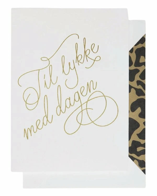 Kort: “Til lykke med dagen” – A6 – Hvit, Gull