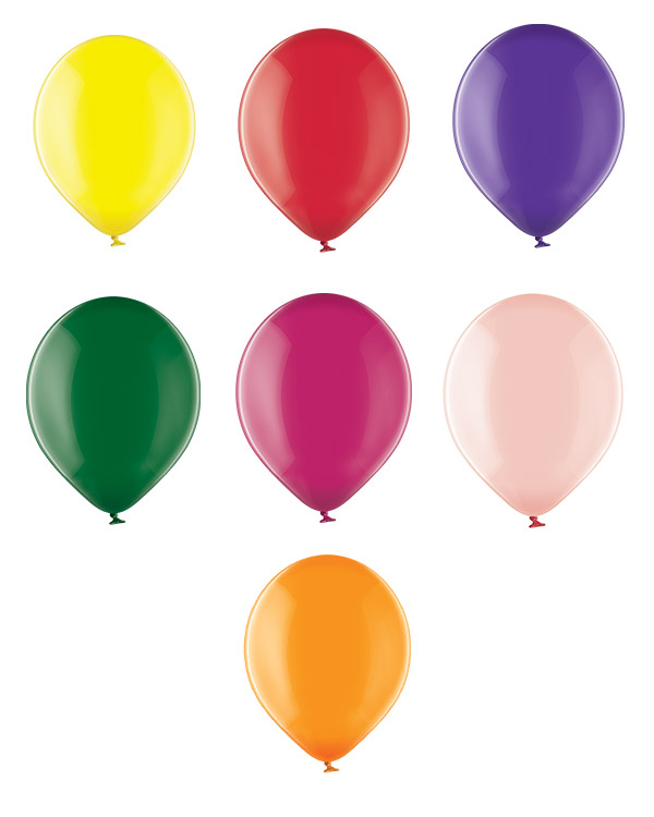 Lateksballonger i crystalfarge (transparente farger). Disse ballongene får du i mange ulike farger, slik som rød, blå, rosa etc. Ballongene kan bli opptil 12cm store når de blåses opp. Passer perfekt til ballongbuketter, dekorasjon til fest og gaver til noen du bryr deg om. Alle våre lateksballonger er nedbrytbare i naturen på lik linje med eksempelvis eikeblader.