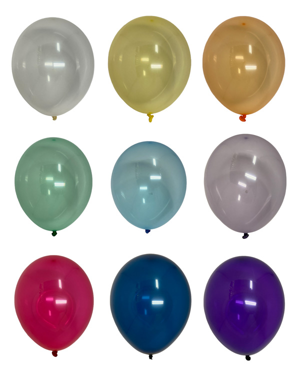 Lateksballonger i crystalfarge (transparente farger). Disse ballongene får du i mange ulike farger, slik som rød, blå, rosa etc. Ballongene kan bli opptil 12cm store når de blåses opp. Passer perfekt til ballongbuketter, dekorasjon til fest og gaver til noen du bryr deg om. Alle våre lateksballonger er nedbrytbare i naturen på lik linje med eksempelvis eikeblader.