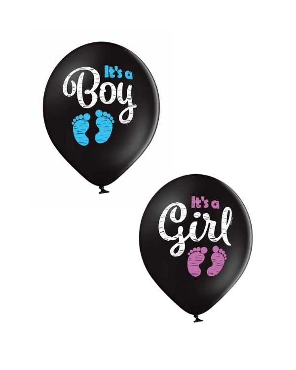 Lateksballong i svart & blå/rosa pastellfarge med tekstdekorasjon: “It’s a Boy/Girl”. Passer perfekt til babyshower, eller som en overraskelse til de du ønsker å dele kjønnet på din kommende baby som er på vei. Ballongen kan bli opptil 30cm store når den blåses opp. Alle våre lateksballonger er nedbrytbare i naturen på lik linje med eksempelvis eikeblader.