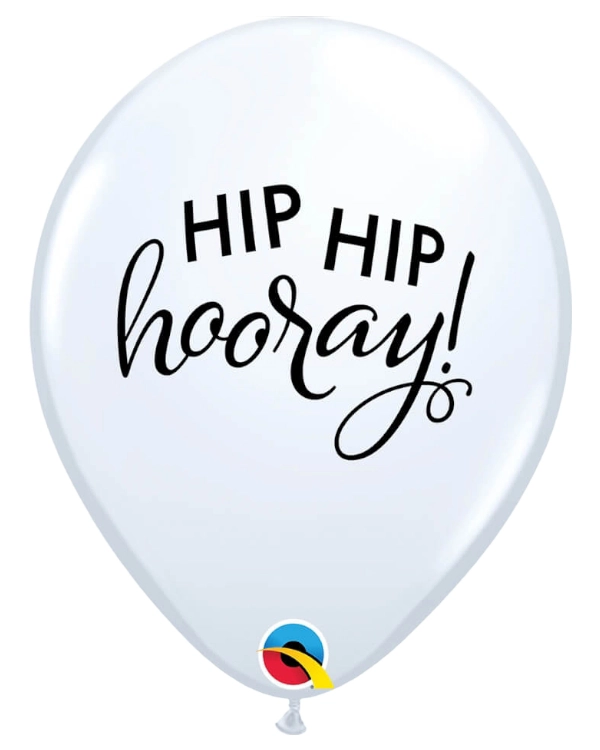 Lateksballonger (25stk): “Hip Hip Hooray” – Hvit – 28cm