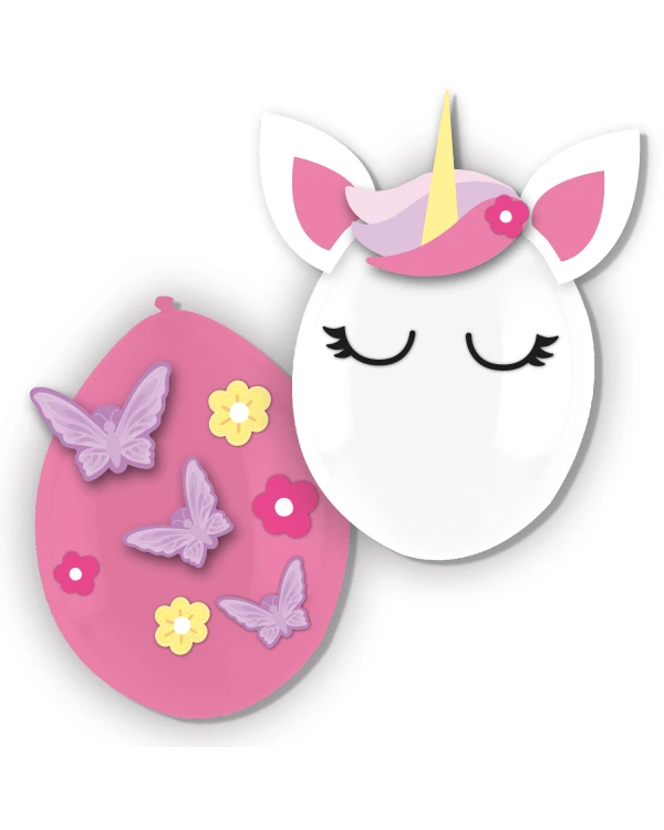 Lateksballonger (3stk) med 3D sommerfugler og enhjørning, 35cm