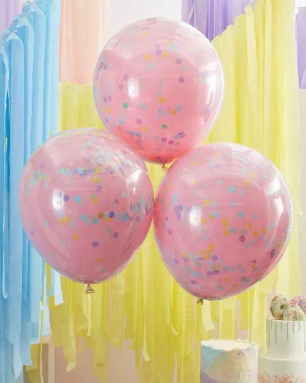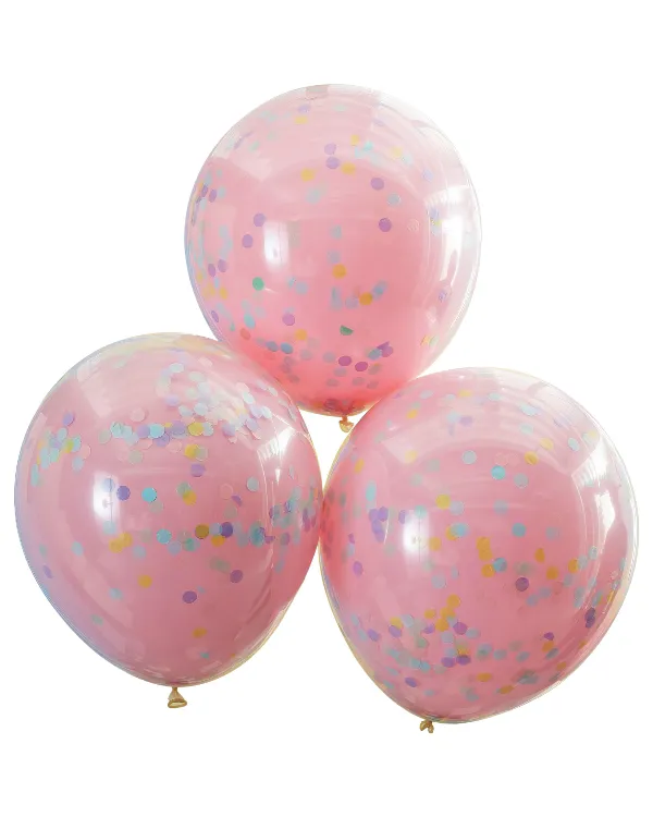 Lateksballonger (3stk): Dobbel lags konfettiballonger – Rosa med papir sirkler – lys rosa – 45cm
