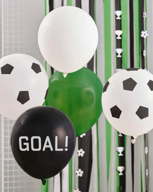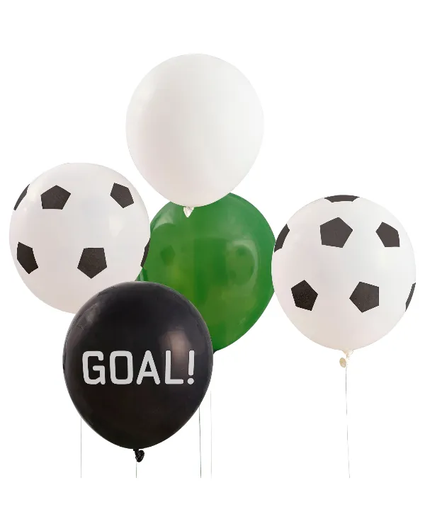 Disse lateksballongene er spesielt designet som fotballer med teksten “Goal” trykt på dem. De er ideelle for å dekorere fotballtematiserte arrangementer, bursdagsfester eller sportsbegivenheter. Med en pakke som inneholder 5 ballonger, har du nok til å skape en imponerende dekorasjon.