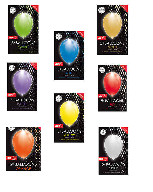 5 stk lateksballonger med ledlys inni. Ballongene er 30 cm og kommer i fargene blå, grønn, gul, hvit, lilla, metallic gull, metallic sølv, oransje, rød og rosa. Lag en lekker, lysende ballongbukett og bruk den som pynt på en festlig anledning. Ballongene lyser i 20 timer. Passer til oppfylling med luft, og ikke helium. Alle våre lateksballonger er nedbrytbare på lik linke med et eikeblad.