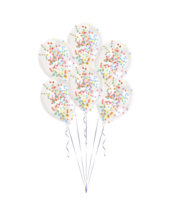 Lateksballonger (6stk): Assortert konfetti – 27,5cm