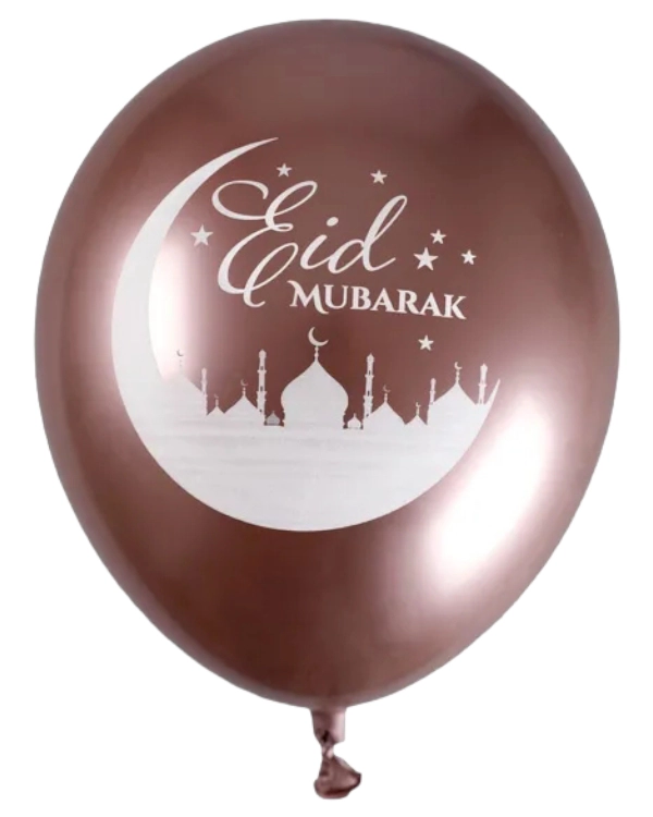 Lateksballonger (6stk): “Eid Mubarak” – Rosegull – 30cm