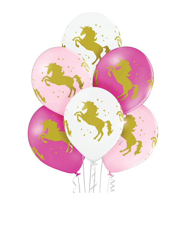 6 stk. Lateksballonger dekorert med enhjørninger i gullfarge. Settet kommer med tre forskjellige bakgrunnsfarger i pastell: Hvit, rosa og “Rose”. Ballongene kan bli opptil 30cm store når de blåses opp. Passer perfekt til jentebursdager med søte og friske farger. Alle våre lateksballonger er nedbrytbare i naturen på lik linje med eksempelvis eikeblader.