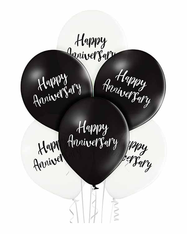 Lateksballonger (6stk): “Happy Anniversary” – 30cm