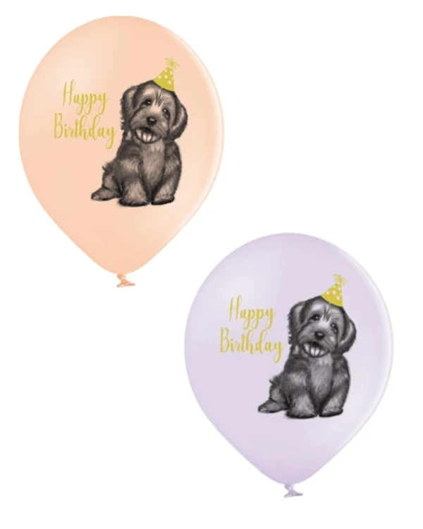 Morsomme bursdagsballonger med motiver av en hund på. Passer perfekt til dyreelskeren! Fyll de med luft eller helium. Kjøp med Ultra High Float du kan smøre på ballongbuketten så den varer ekstra lenger. Vi anbefaler også å kjøpe en ballongvekt så den holder seg på samme sted hele kvelden. Alle våre lateksballonger er nedbrytbare i naturen på lik linje med et eikeblad.