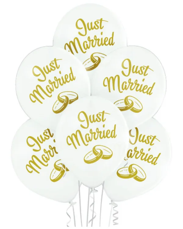 Lateksballonger (6stk): “Just married” – Hvit – 30cm