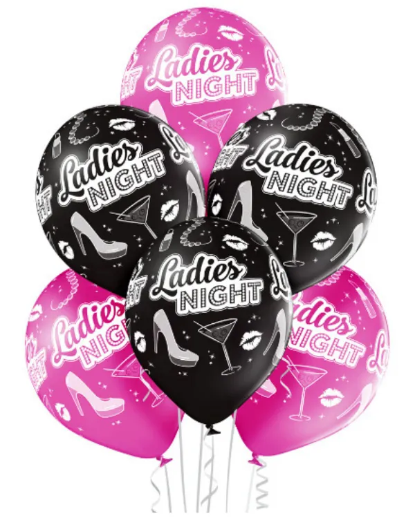 Lateksballonger (6stk): “Ladies Night” – Rosa & Svart – 30cm