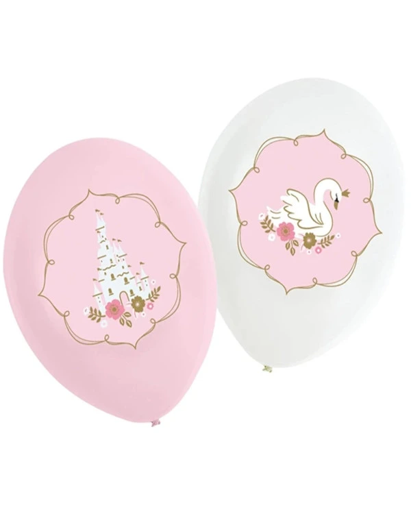 6 stk. Lateksballonger i hvit og rosa farge. Ballongene er dekorert med svanner og Slott som gjør at de passer perfekt til babyshower, nyfødte babyer og andre hyggelige anledninger for små barn. Ballongene kan bli opptil 28 cm store når de blåses opp. Alle våre lateksballonger er nedbrytbare i naturen på lik linje med eksempel eikeblader.