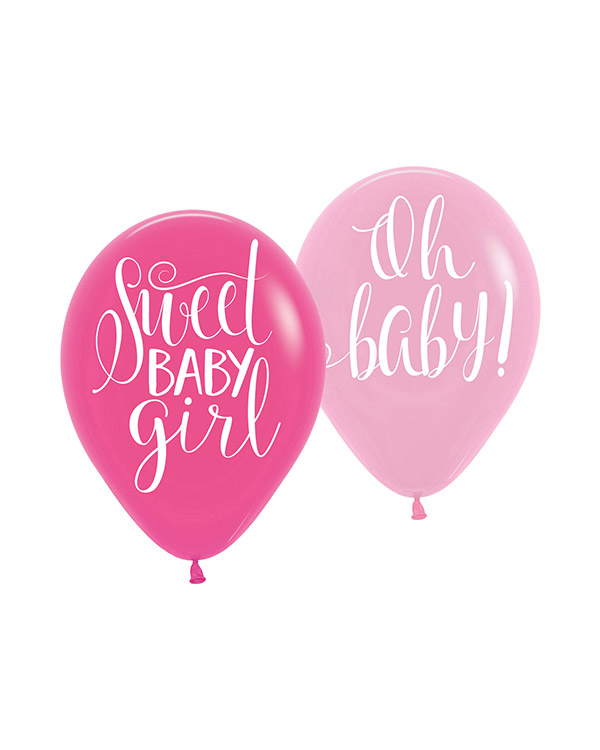 6 stk. lateksballonger i lys og mørk rosa med teksten “Sweet baby girl” og “Oh baby”. Passer perfekt til ballongbuketter, dekorasjon til babyshower eller som gave til de nybakte foreldrene. Alle våre lateksballonger er nedbrytbare i naturen på lik linje med eksempelvis eikeblader. Ballongene kan bli opptil 27,5cm når de er oppblåst.