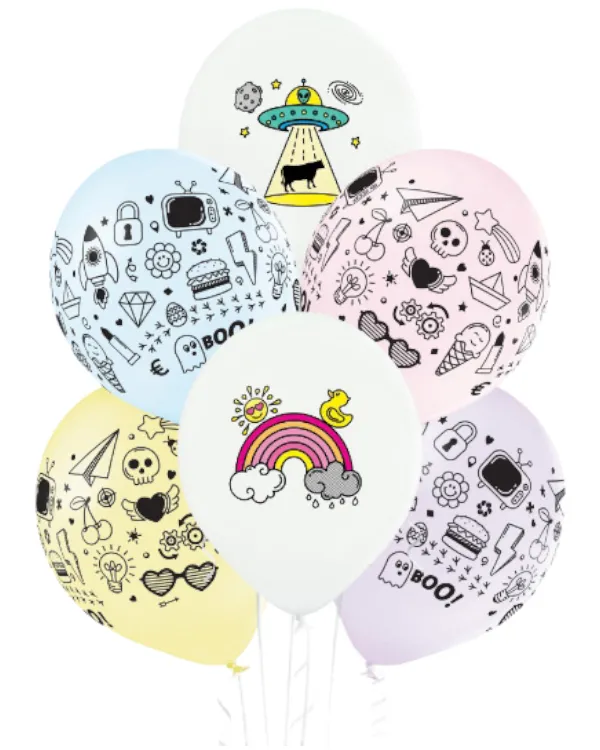 Lateksballonger (6stk): Tegninger – Fargerik – 30 cm