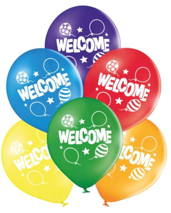 Lateksballonger (6stk): “Welcome” – Fargerik – 27cm
