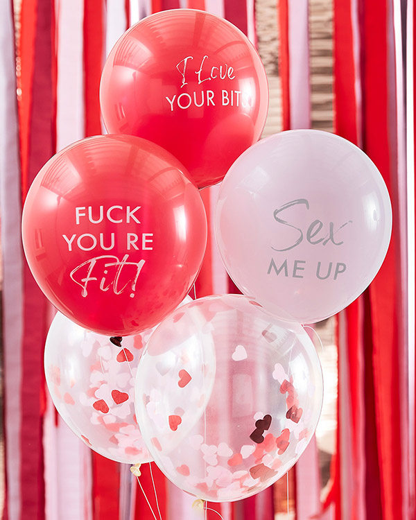 Denne morsomme pakken med rosegull, røde og lyserosa ballonger vil du være kjærlighetsklar på kort tid! Med fire forskjellige stiler på ballongene, vil din spesielle person ha det gøy med å lese de morsomme og flørtende meldingene!