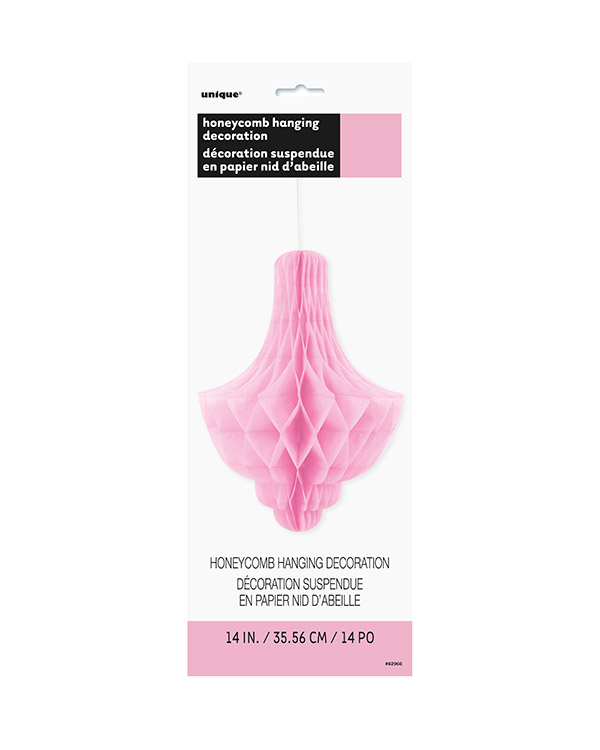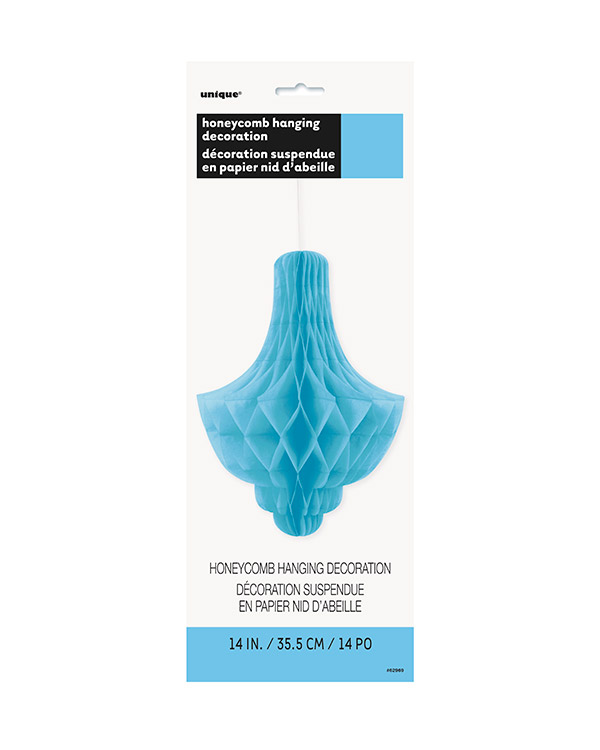 Honeycomb på 36 cm formet som en lysekrone. Kommer i lys blå, lys rosa og svart. Fin pynt på babyshower, fest eller bursdag.