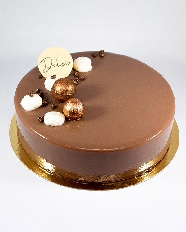 Melkesjokolademousse med vanilje crème brûlée fyll og mandelbunn. Kombinasjonen av vanilje og sjokolade er en gammel klassiker som aldri slår feil. En kake full av sødme som er populær både blandt voksne og barn. Kaken er glutenfri, og kan tilpasses etter ønske med ekstra pynt og skrift.
