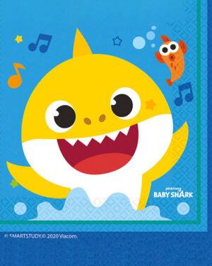 Dekk opp festbordet med disse lekre serviettene med Baby Shark-motiv! Serviettene er fargerike og måler 16,5 cm, og kommer i en pakke med 20 stk. Perfekt for bursdagsfesten eller andre spesielle anledninger.