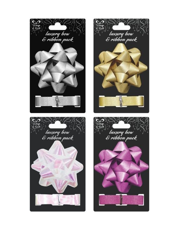 1 stk pakke med matchende sløyfe og bånd. Kommer i fargene, rosa, gull, sølv og iriserende. Vi har masse lekkert gavepapir som matcher sløyfene og båndene. Perfekt når du skal pakke inn en gave til noen du er glad i til bursdag eller jul.