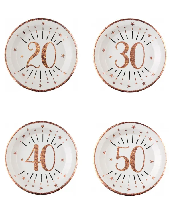 Disse fantastiske tallerkenene med stjernemønster i rosegull er den perfekte tilføyelsen til ditt festbord. Med en størrelse på 22,5 cm er de ideelle for servering av forretter, hovedretter eller desserter. Denne pakken inneholder 10 tallerkener, slik at du har nok til å imponere gjestene dine. Laget av høykvalitets materiale, er disse tallerkenene både holdbare og elegante. Skap en uforglemmelig atmosfære på dine spesielle anledninger med disse vakre tallerkenene i rosegull.