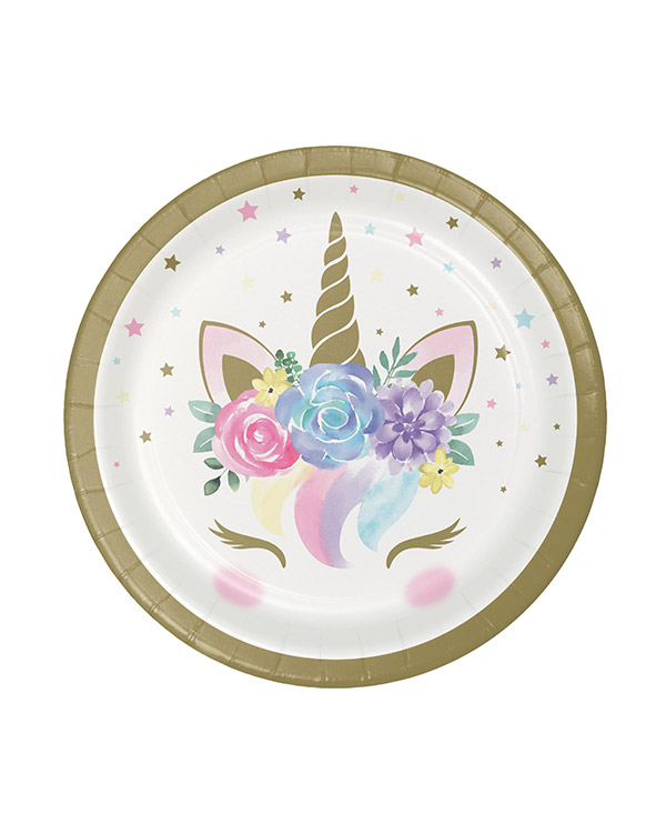 8 stk. Enhjørnings-tallerkener på 18cm størrelse. Fine tallerkener til tema- og bursdagsfester for jenter.