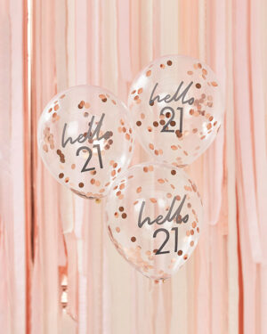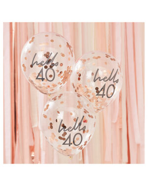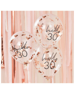«Happy Birthday» med konfetti – Rosegull – 30cm