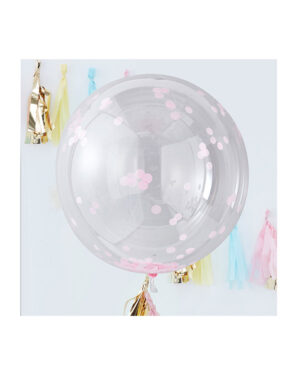 Dobbel lags konfettiballonger – Rosa med papir sirkler – lys rosa – 45cm