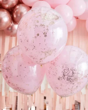Dobbel lags konfettiballonger – Rosa med gull glitter – lys rosa – 45cm