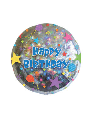«Happy Birthday» – Konfetti – Blå & sølv – 30cm