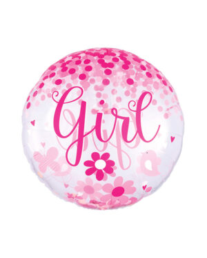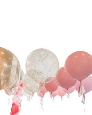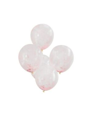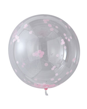Dobbel lags konfettiballonger – Rosa med papir sirkler – lys rosa – 45cm