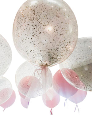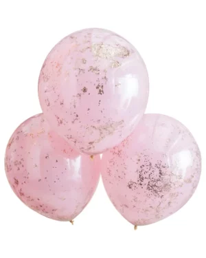 Dobbel lags konfettiballonger – Rosa med gull glitter – lys rosa – 45cm