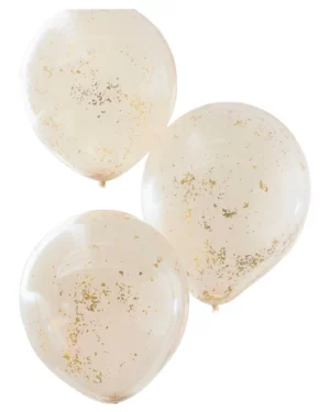 Dobbel lags konfettiballonger – Hvit med gull glitter – hvit – 45cm
