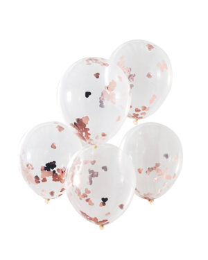 Hjerter – Gjennomsiktig – Rosegull konfetti – 30cm