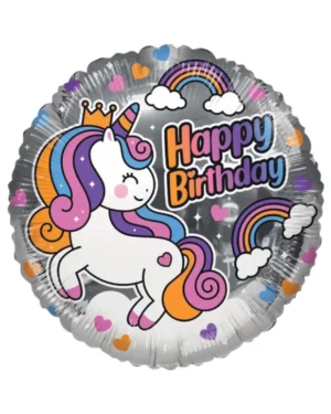 «Happy Birthday» – Enhjørning & Glitrende effekt – Fargerik – 45cm